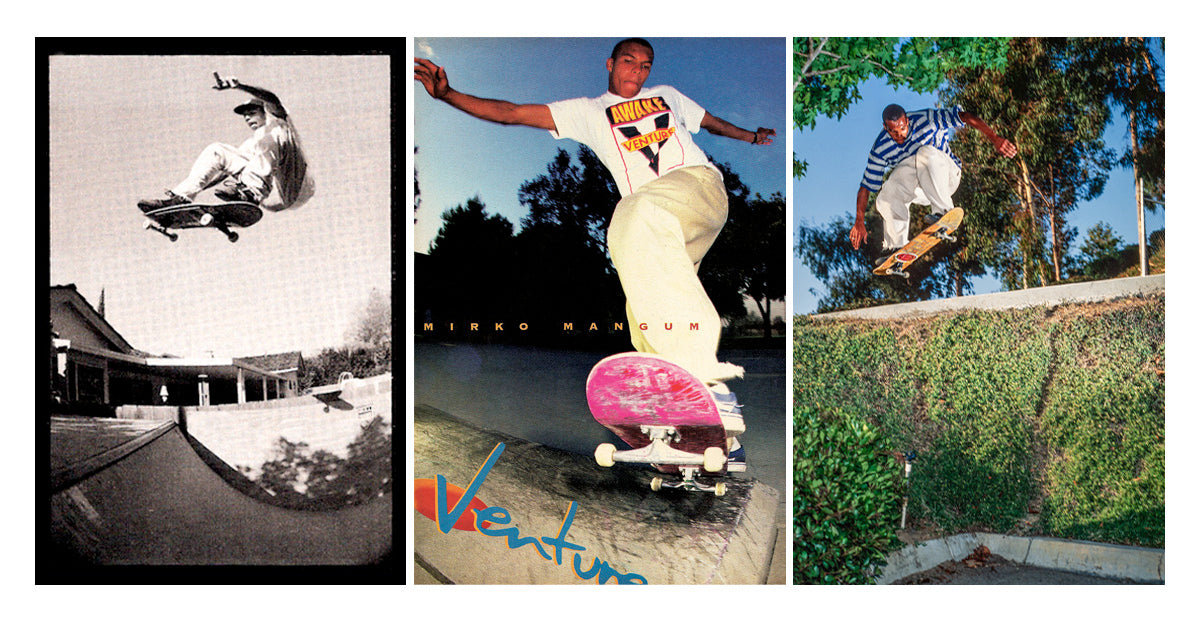 Mirko Mangum's career as a pro skater was bright—coming up out of San Diego, riding for high profile companies like Planet Earth, traveling to the European contests in the summers and placing well, getting clips in 411s, classic photos in all the mags—but all this also set him up for a career in the skate industry after the professional days faded...